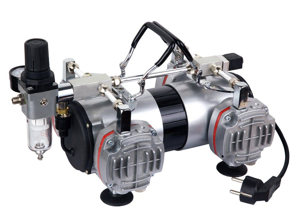 Acest compresor puternic, cu debit mare de aer, nu este potrivit pentru 1-2 pistoale aerograf, deoarece are o putere mai mare decât cea pe care o pot suporta pistoalele. Compresorul s-ar opri și porni în timpul pulverizării. Consumul ideal de aer pentru acest compresor este atunci când mai multe persoane lucrează în același timp, adică cel puțin 3-4 pistoale (persoane) sau un pistol de pulverizare mic cu o duză de maximum 1 mm.