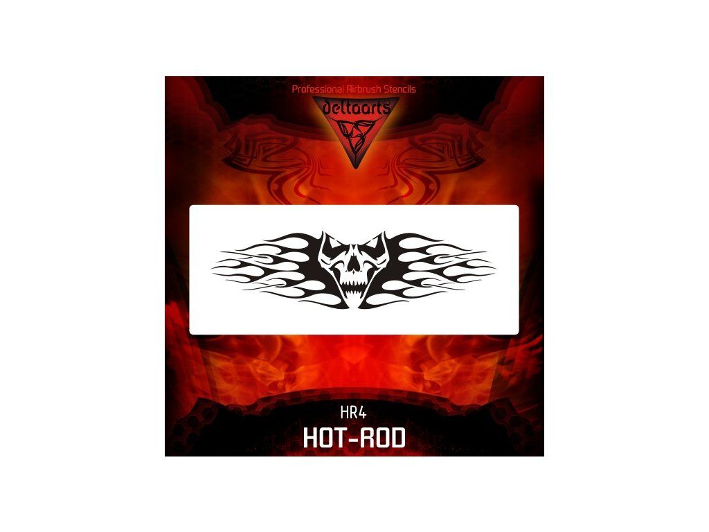 Șablon pentru aerograf Hot-rod. Tăiat din folie Mylar cu grosimea de 0,2 mm. Dimensiuni: 272 x 74 mm.
