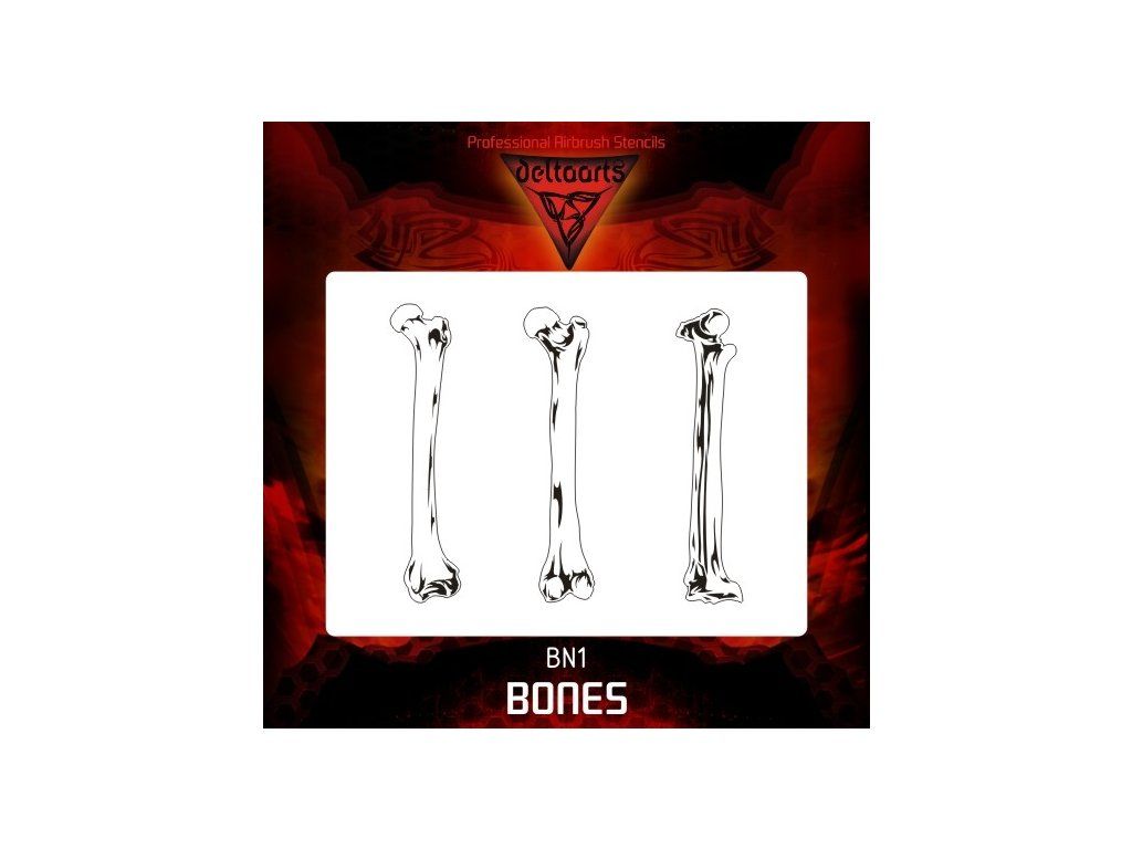 Șablon pentru aerograf - oase. Decupat în folie de mylar cu grosimea de 0,2 mm. Dimensiuni 300 x 225 mm. Set de 2 șabloane.