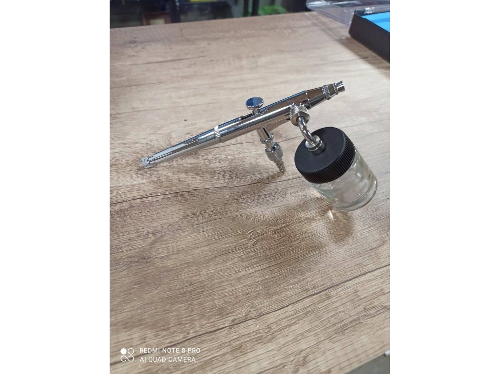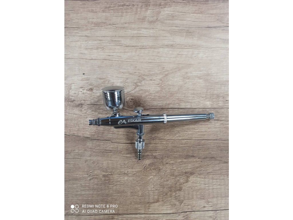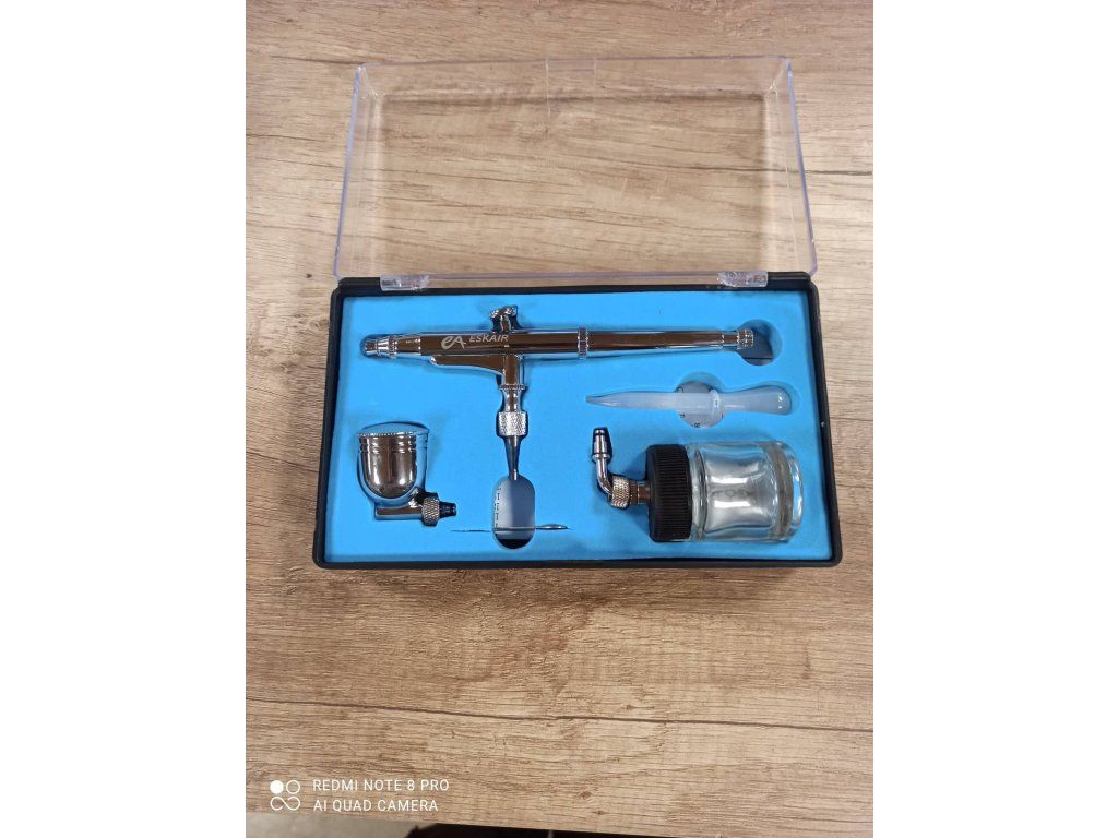 Pistolele de pulverizare Eskair sunt un produs al AirbrushShop.sk. Sunt pistoale fabricate cu precizie, cu duze bine centrate, ace lustruite și o manoperă de înaltă calitate. Garantăm calitatea mărcii noastre, motiv pentru care oferim o garanție de 5 ani pentru pistolele Eskair. Garantăm service gratuit în garanție și post-garanție clienților noștri fideli. Eskair sk-130 este un model de bază echipat cu o duză înșurubabilă. Este livrat standard cu o duză de 0,3. Cu toate acestea, puteți alege dintre 4 dimensiuni - 0,2, 0,3, 0,5 și 0,8 mm. Alternativ, puteți achiziționa un kit de conversie separat într-o dimensiune diferită. Acest pistol este potrivit pentru începători, cofetari, modelatori și pasionați de bricolaj pentru lucrări nepretențioase. Pistolul are un corp complet cromat, cu un rezervor de 7 ml. Pachetul include, de asemenea, un capac pentru rezervor, o cheie pentru duză, o duză pentru un furtun de 4 mm și o pipetă. Sk-130 este un pistol cu dublă acțiune. Acest lucru înseamnă că aerul și vopseaua sunt eliberate independent unul de celălalt prin apăsarea trăgaciului. Apăsarea trăgaciului eliberează aerul, iar tragerea acestuia înapoi eliberează vopseaua. La capătul pistolului se află o piuliță pentru reglarea opritorului acului. Aceasta vă permite să setați cantitatea maximă de vopsea eliberată. Presiunea de lucru a pistolului este de 1-3,5 bari. Lungimea pistolului este de 15 cm, iar greutatea sa este de 77 g.