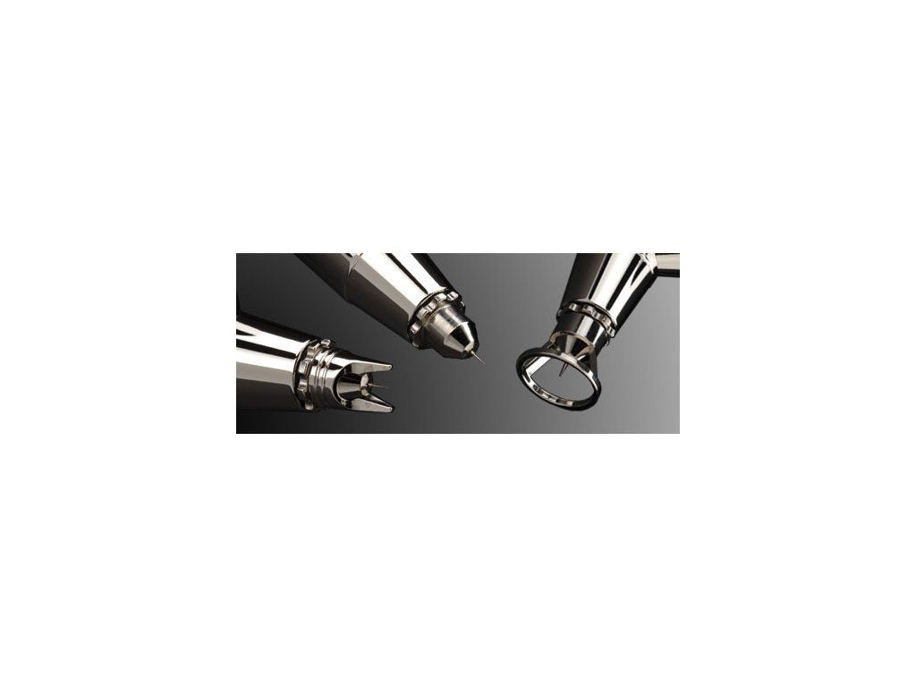 Un pistol aerograf de calitate superioară pentru artiști profesioniști. Acest pistol nu numai că are un design de top, dar oferă și funcții inteligente și o ergonomie excelentă. Quick fix este un opritor de ac reglabil cu setare de memorie, rigiditate reglabilă a manetei și protecție a acului deschis cu demontare ușoară, permițând un control perfect al acului și al pulverizării vopselei.