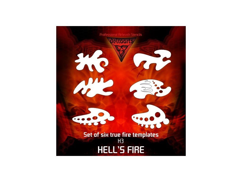 Șablon pentru aerograf din seria True Fire. Set de 6 șabloane. Tăiate din folie mylar cu grosimea de 0,2 mm.